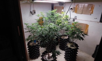 Sementara itu, untuk pohon ganja ditanam dalam pot, dengan diletakkan di bawah tangga. Ada tujuh pohon yang sudah tumbuh dengan daun lebat dan ketinggian sekitar 1 meter. Tempat penyimpanan pohon ganja ini dibagi dua, satu tempat untuk ganja yang sudah tumbuh besar dan satu tempat digunakan untuk menyemai bibit.